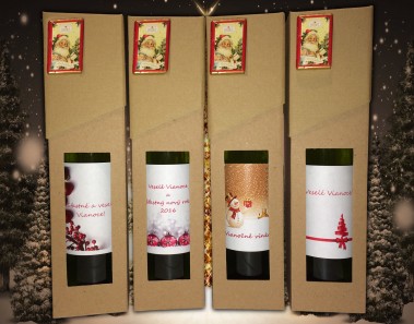 Ste milovník vína alebo ste úplný laik a len Vám chutí pocit, keď sa lahodný nápoj derie cez jazyk do bruška? Pre nás to nie je žiaden problém, vieme uspokojiť akéhokoľvek zákazníka. Zverte sa do našich rúk a doprajte tento rok svojim najbližším ten pocit ochutnať kvalitné víno v jedinečnom darčekovom balení. Ponúkame rôzne vianočné darčekové balenia, pre ženy aj pre mužov, pre páry, starších i mladších a ako bolo spomenuté pre fajnšmekrov ale aj pre laikov. Pre tých originálnejších máme tento rok v ponuke aj darčekové balenia s vlastnou etiketou. A čo si na ňu dať? Čokoľvek budete chcieť. Je to na Vás! Ale kto by zahodil takú originálnu fľašu? Samozrejmosťou je aj krásne zabalený balíček s malou sladkou bodkou na záver v podobe čokoládky.
